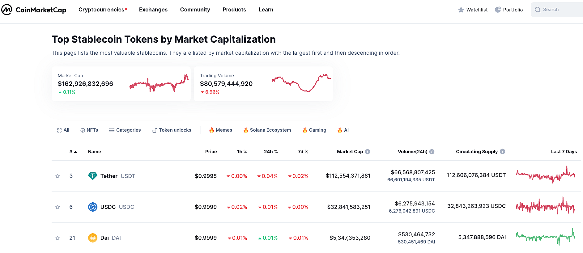 Stablecoins, die weit verbreitet als Zahlungsmittel genutzt werden, müssen sicherstellen, dass ihre Transaktionsvolumen bestimmte Schwellenwerte nicht überschreiten, um das Finanzsystem nicht zu gefährden. Ein Beispiel für die Bedeutung des Handelsvolumens zeigt sich bei Stablecoins wie Tether (USDT), USD Coin (USDC) und Dai (DAI):
