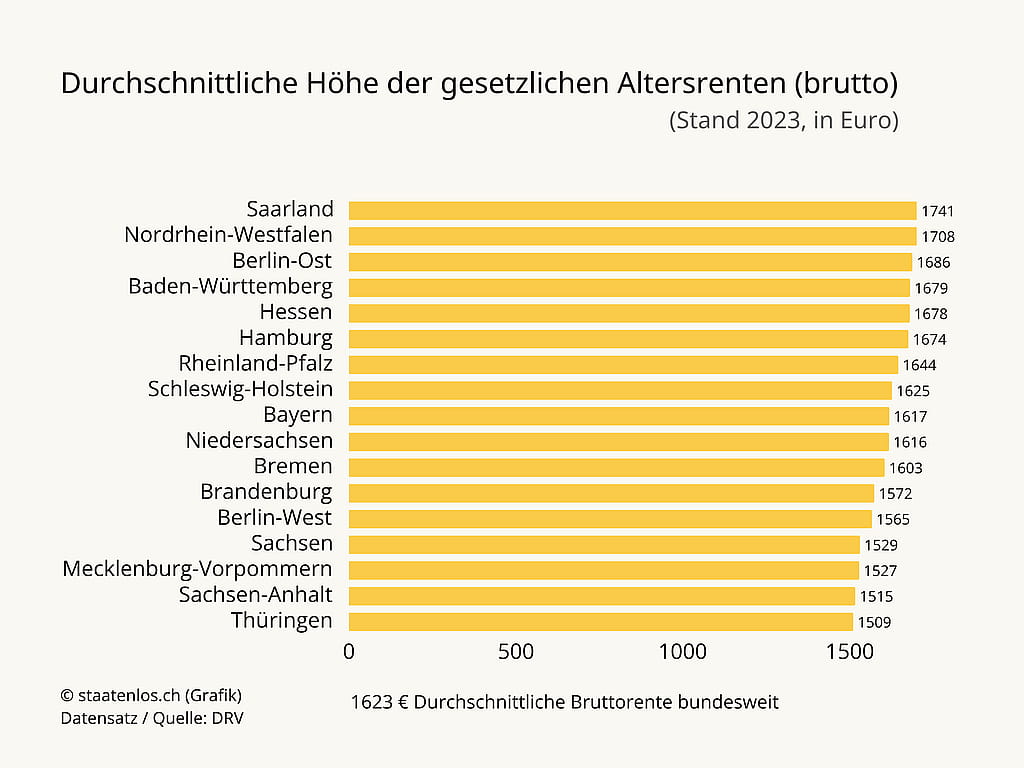 Die meisten deutschen Renten werden dabei vor allem an die deutschsprachige Nachbarn Österreich und Schweiz gezahlt, aber auch die USA gelten seit Jahrzehnten als klassisches Auswanderungsziel für Rentner. Dabei sind die Rentenansprüche im Schnitt vergleichsweise ähnlich;