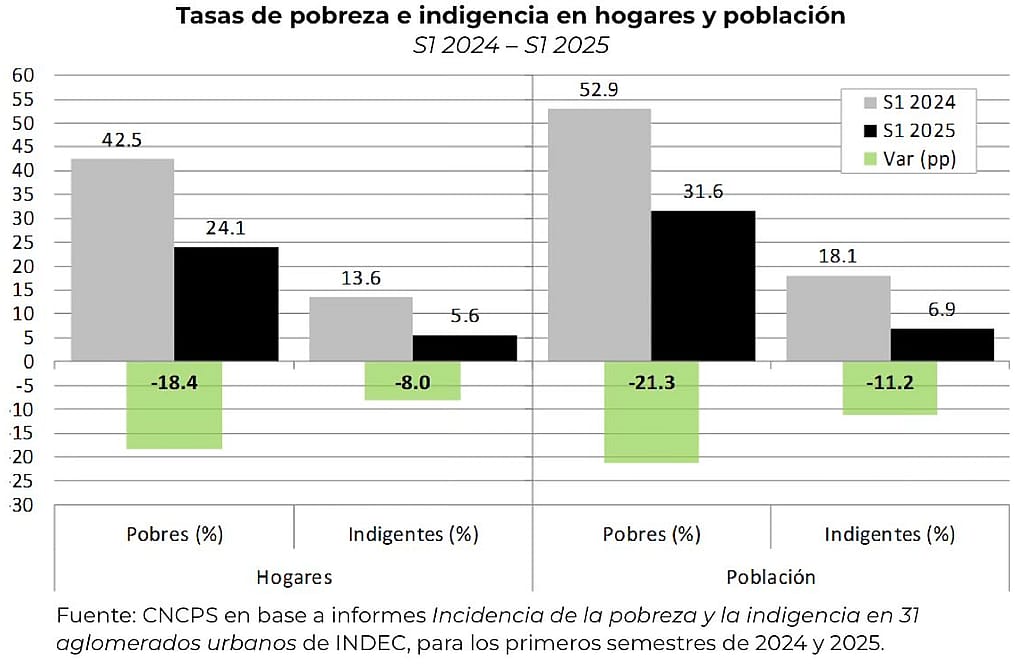 Mileis Gegner, von Gewerkschaften bis zur katholischen Kirche, schlugen in dieselbe Kerbe: Der Sparkurs werde vor allem die Schwächsten der Gesellschaft treffen. Tatsächlich schossen im ersten Halbjahr die Armutswerte auf rund 53 %, erholten sich seitdem jedoch sukzessive. Die ersten Monate von Mileis „Schocktherapie“ wurden natürlich entsprechend medial ausgeschlachtet: Suppenküchen und Straßenszenen von verarmten Familien befeuerten das mediale Narrativ, Mileis Politik habe und werde die soziale Not massiv und in nie da gewesenem Ausmaß verschlimmern.
