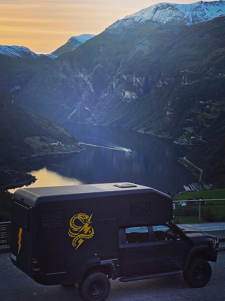 Zum Thema Internet in den verschiedenen Ländern haben wir hier bereits berichtet, auf die Du natürlich auch als Vanlifer / Camper zugreifen kannst. Dennoch empfiehlt sich gerade auf Reisen in entlegene Gebiete auf bspw. Starlink zurückzugreifen, wo Du bspw. mit Starlink Roam, das Satelliteninternet von SpaceX, praktisch überall online sein kannst. Ein kleiner Satellitenschüssel-Empfänger bietet oft bis zu 180 Mbit/s Downstream und ausreichend Upload für Videocalls – selbst mitten im Nirgendwo. Überlege, ob es für Dein Business nötig ist oder ob Dich ein guter Mobilfunkrouter schon ausreichend versorgt, aber empfehlenswert ist diese Option natürlich allemal. Wir selber sind natürlich auch damit ausgestattet – für uns unverzichtbar. Durch bei uns zahlreicher dünner Fenster auf allen Seiten ist auch der Betrieb unseres Starlink-Mini-Internets selbst bei schlechtem Wetter gesichert. Auf einen Festeinbau haben wir verzichtet, da in großen Teilen vermutlich auch das Mobilnetz erst einmal reichen wird. Auf der Jungfernfahrt in Norwegen und Dänemark hat Christoph seinen Starlink-Router Null mal benutzen müssen obwohl er immer frei stand.