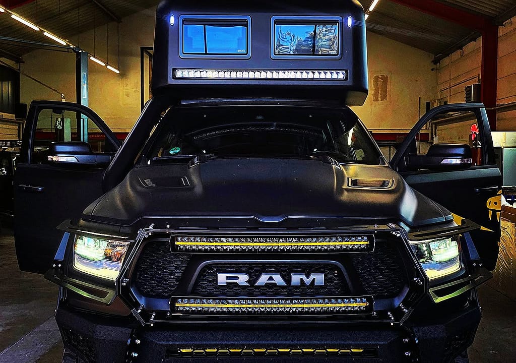 Wie schon gesagt, wollten wir das Unmögliche wagen und haben es nach den ersten Jungfernfahrt in Skandinavien auch erfolgreich gemeistert. Uns war klar, dass es ein Pickup-Truck mit Kabine werden sollte. Aber kein langweiliger Toyota Hilux oder Ford Raptor, den es schon in Massen gibt. Als Dodge-Fan war relativ schnell klar, dass die Marke RAM die Marke der Wahl ist. Ausflüge mit einem Dodge RAM TRX in Dubai bestätigten dies. Leider ist der als “T-Rex” bekannte 750 PS starke Pickup zu schwer um unser Projekt realistisch umzusetzen, abgesehen vom gigantischen Sprit-Verbrauch.