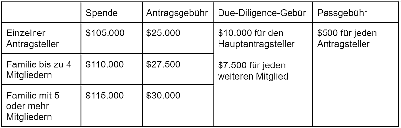 – Ein weiteres Geschwister des Hauptantragstellers oder dessen Ehepartner kann für 15.000 USD einbezogen werden.