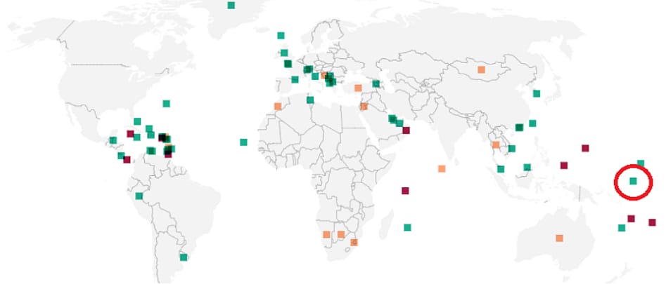 Nauru (roter Kreis) ist eine international kooperative Jurisdiktion und wird nicht mehr als Steueroase eingestuft. Bildquelle: EK